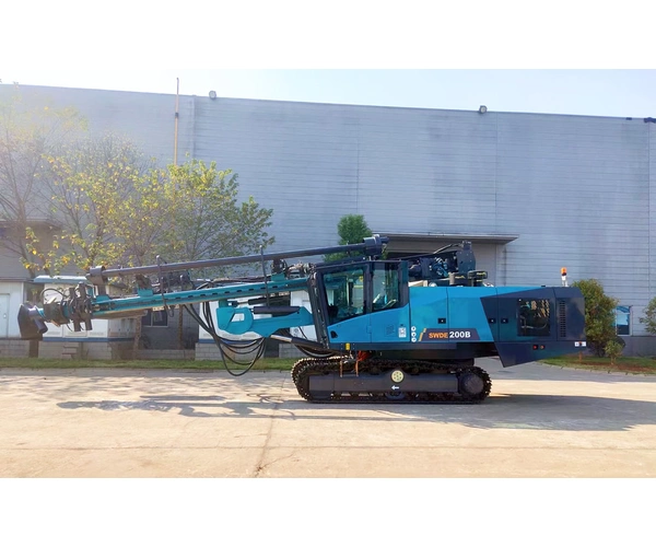 Буровой станок DTH для бурения с поверхности SWDE200B легко справляется с бурением вертикальных, наклонных и горизонтальных скважин для различных геологических потребностей и в сложных климатических условиях.