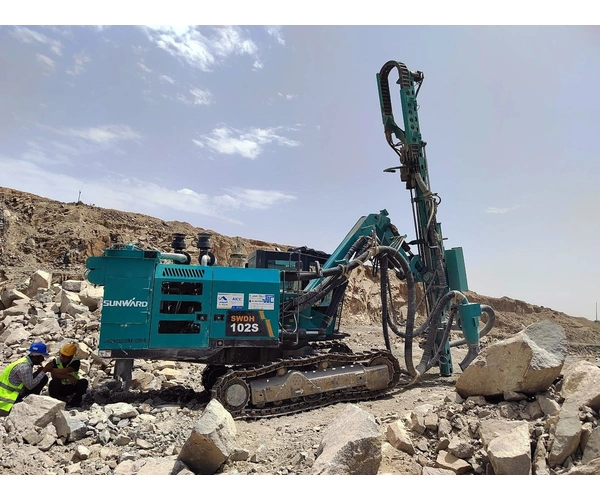 Гидравлический буровой станок с выносным перфоратором SWDH102S спроектирован в соответствии с условиями эксплуатации открытых карьеров малого и среднего размера и небольших открытых шахт.