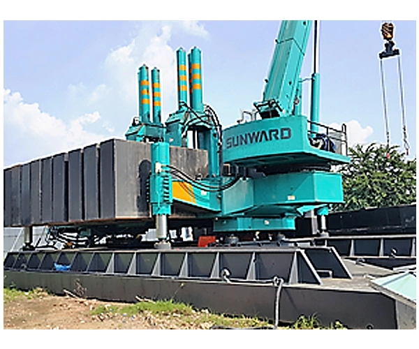 Гидравлическая установка для вдавливания свай ZYJ680B оснащена новым механизмом перемещения, который состоит из следующих инновационных технологий: авто-возвращение ходовой части, функция компенсации вращения и функция равномерной нагрузки сцепления.